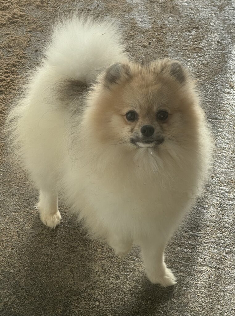 These boys went to their new family together while they were in the “Pom Uglies” that awkward stage between a cute chubby fluffy puppy and an adult. In this stage, they are so homely that they are cute!